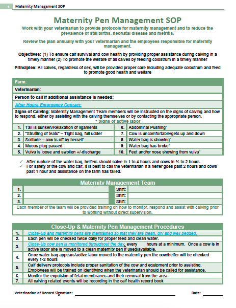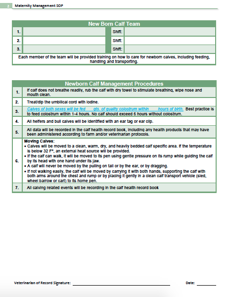 Written protocols should be in place and reviewed annually with your veterinarian and employees to ensure that certain procedures are carried out appropriately.